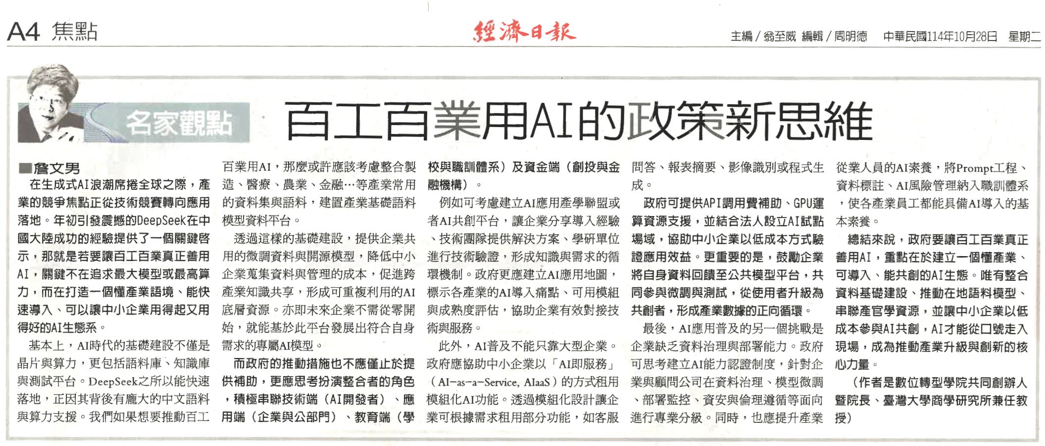 (作者為數位轉型學院共同創辦人暨院長、台灣大學商學研究所兼任教授)