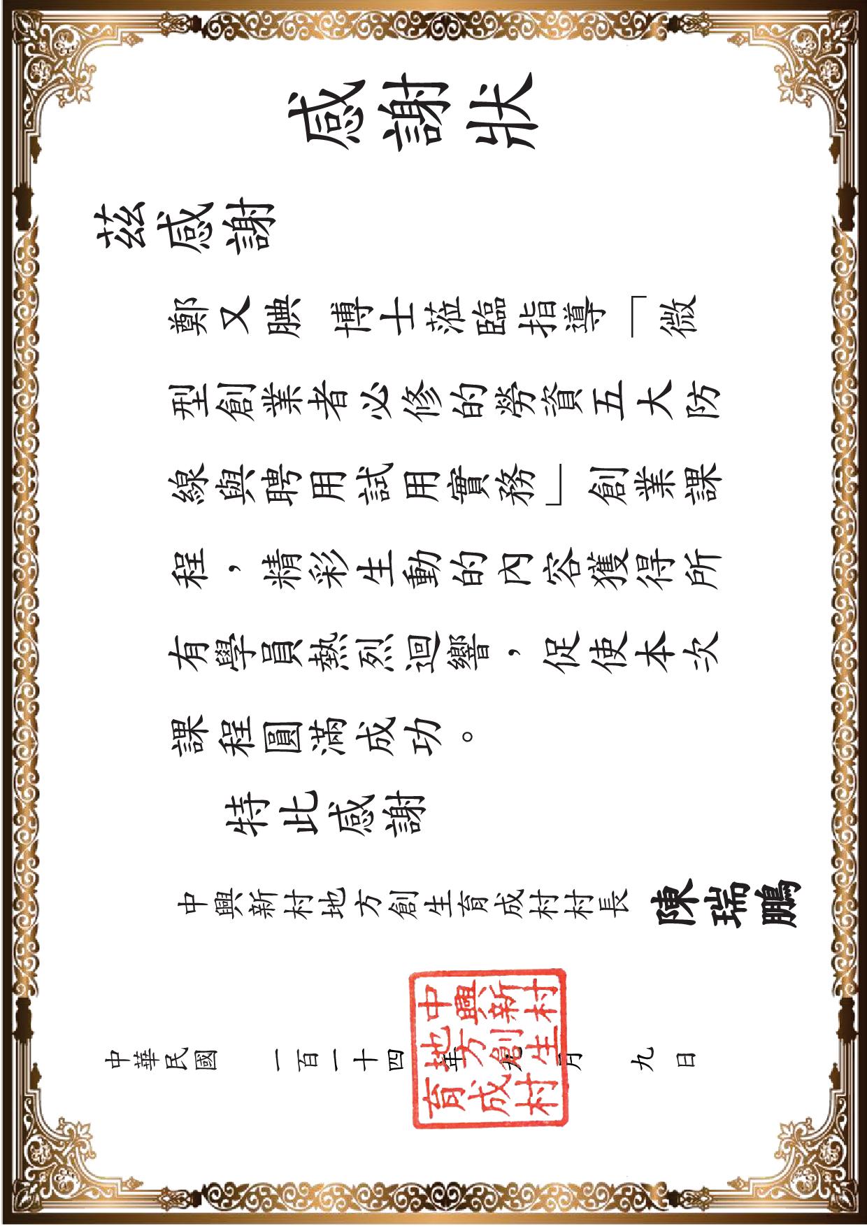 —— 企業勞資暨績效改善顧問 鄭又腆 敬書